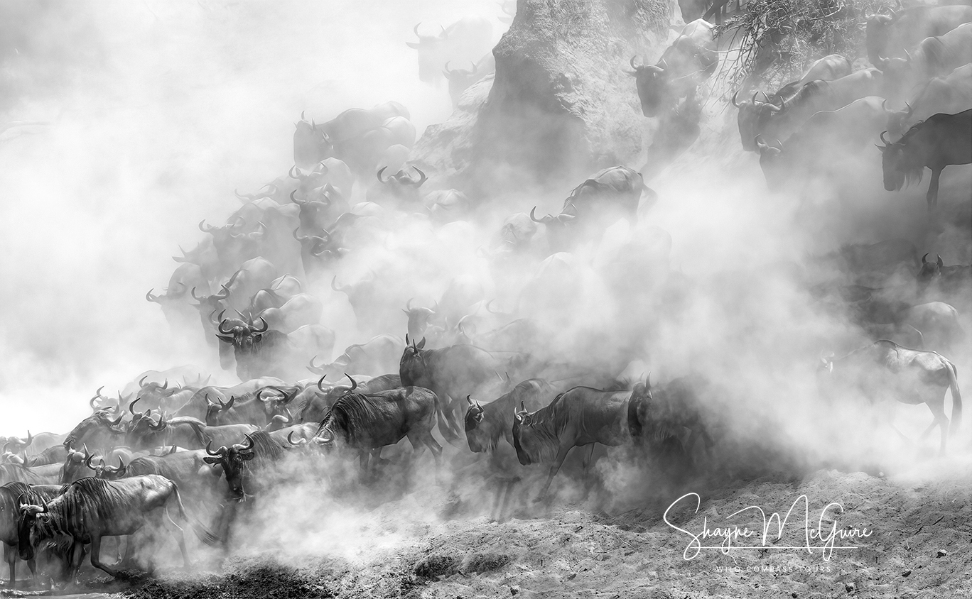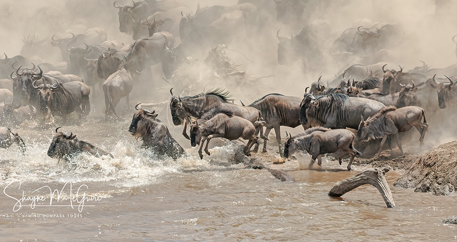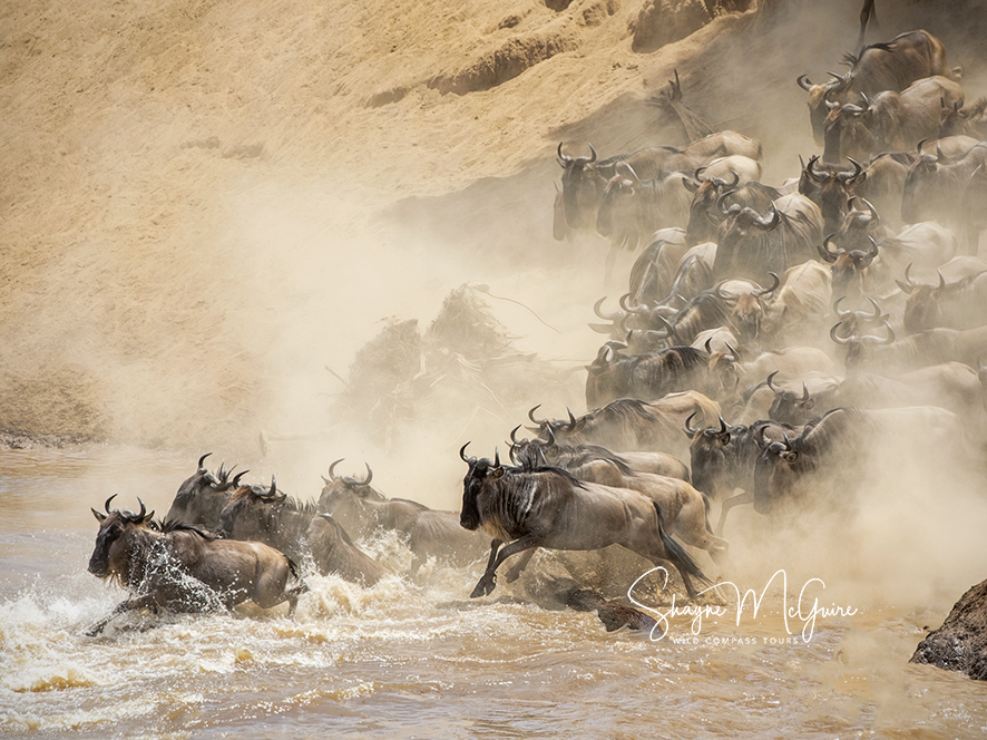 The rush of the migration, the pounding of wildebeest hooves, the dust flying in the air, the calls of the animals in the ensuing rush towards the water, will take your breath away. Predators lurking not only in the water, but in the surrounding bushes, waiting for an ambush. Are you ready?